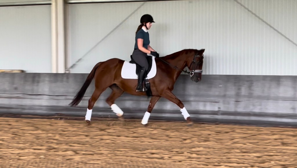Play It Again. Quality Warmblood Mare, with a great nature and a willing attitude. Recommended for dressage, pleasure, adult riding club and currently showing great potential as a show jumper. She is currently competing Preliminary/Novice Dressage and starting to train some elementary movements. Ginny has lovely movement, with natural rhythm and cadence and shows lots of potential.