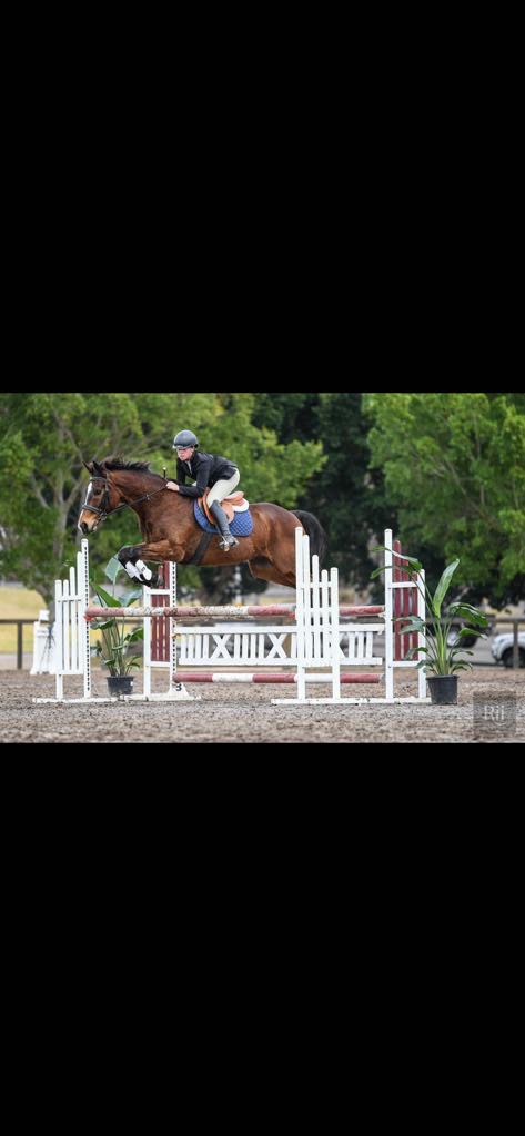 San Hai in third generation is all quality 3/8 Warmblood and 5/8 Thoroughbred, a pedigree to recommend success in dressage, show jumping or eventing. He has an impressive walk with a big overstride, can do a lovely extended trot and has a powerful and uphill canter. He has schooled flying changes, simple changes, leg yields, shoulder in and traver. He has had several dressage wins scoring up to 69%, including winning his first Novice 2B at Hawkesbury Dressage at SIEC and has competed up to Elementary 3A scoring over 60%. San Hai loves to jump and has a lot of scope. He has competed and won 1.15m including Sydney Jumping Association ( SJA ) at the Polo Fields. Has also done cross country with great potential, jumping 95 at training and 80 at SIEC and Camden hunter trials. Placed 4th at his first ODE at SIÈCLE in Eva89. He’s easy to handle, loves hacking out alone and with company, easy to shoe, drench, float, and ties up quietly at the float by himself, or, when travel mates leave. Very loving horse who loves to cuddle and seems to make a bond with his rider. Ideal horse for an experienced rider to take him up through the grades to reach his full potential.